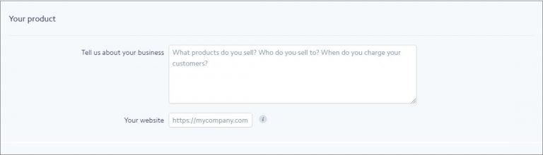 Add your business name and phone number (they will be shown to your customers in their credit card statements) and your bank account details.