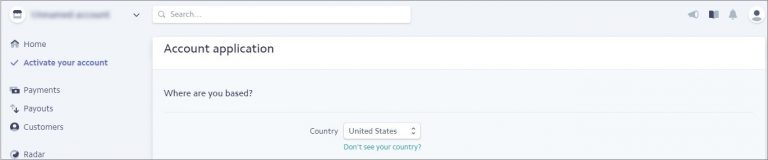 To be able to create your API keys and access live data, you need to activate your account first. Fill out your account application. Start with choosing the country your business based in.