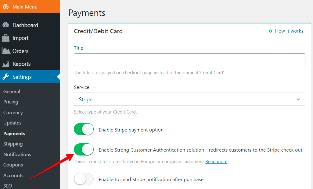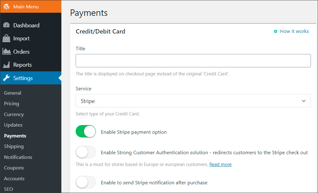 Please note! You need SSL certificate installed on your site to use Stripe.