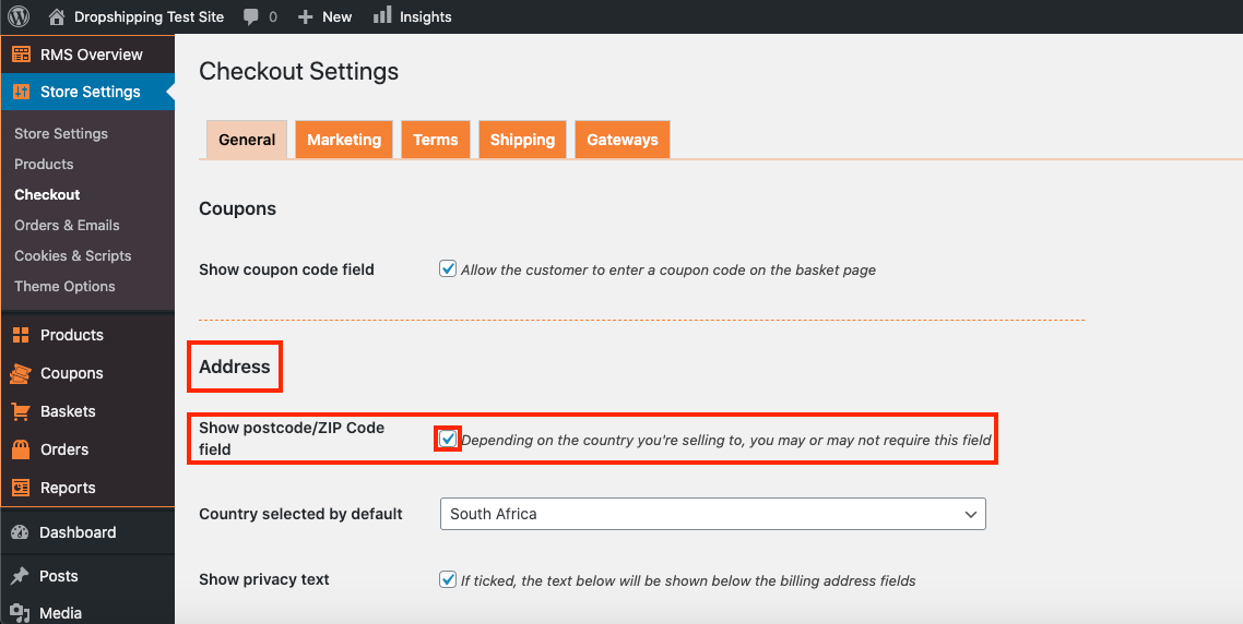 IV. From there, go to: > Store Settings > Checkout > Terms
